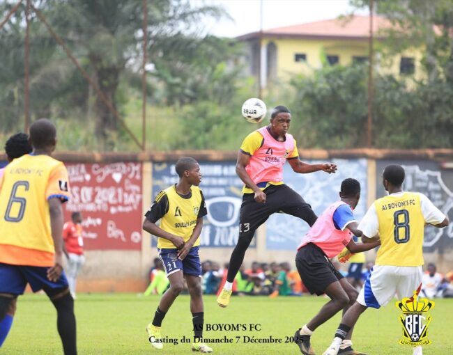 L’Association sportive Boyom’s FC, en partenariat stratégique avec Boulema Afrique, a donné le coup d’envoi de la première phase de sa détection de talents de football jeunes le dimanche 7 décembre dernier à Yaoundé. L’événement, qui s’est déroulé sur le terrain de Rain Forest, a marqué une étape décisive dans le projet ambitieux du club de bâtir une académie de football de premier plan au Cameroun.